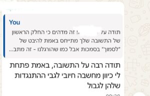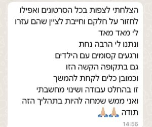 הביטחון הזה מאפשר לכם לסיים איתי תהליכים ולדעת שיש לכם יכולת להתמודד עם כל אתגר שיגיע בהמשך.